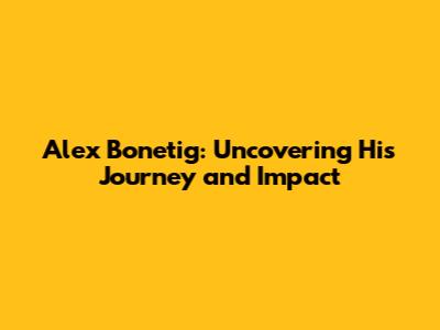Alex Bonetig: Uncovering His Journey And Impact