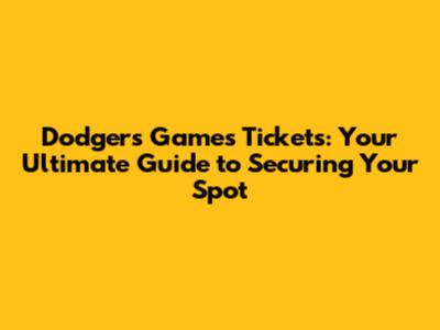 Finding the Best Dodgers Games Tickets for You