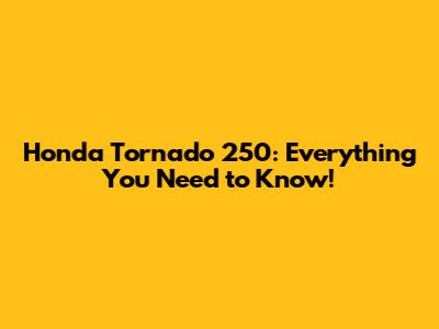 Honda Tornado 250: Specs, Features & More!
