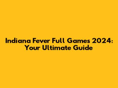 Indiana Fever Full Games 2024: Your Ultimate Guide