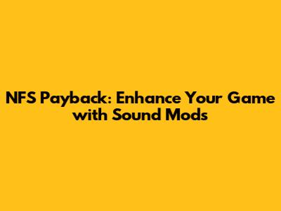 NFS Payback: Enhance Your Game With Sound Mods