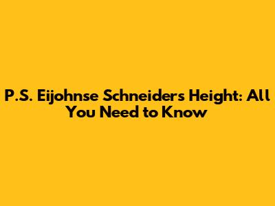 P.S. Eijohnse Schneider's Height: All You Need To Know