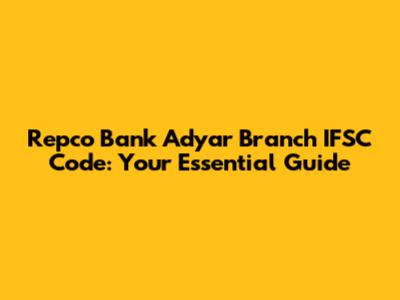 Repco Bank Adyar Branch IFSC Code: A Quick Guide