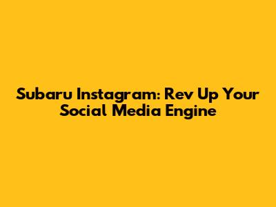 Subaru Instagram: Drive Engagement And Grow Your Following