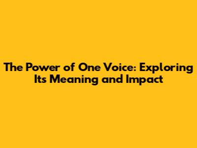 The Power Of One Voice: Exploring Its Meaning And Impact